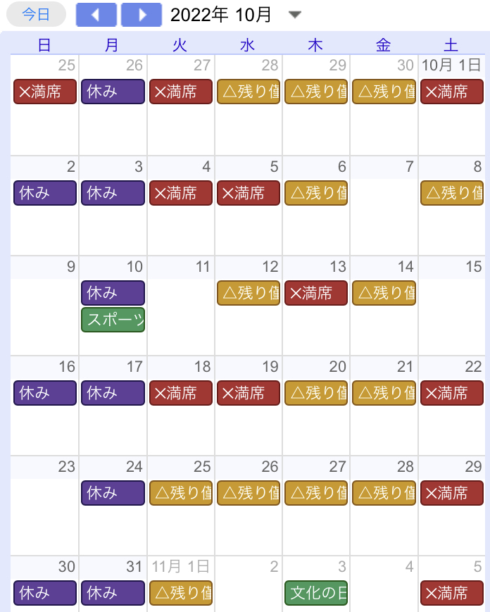 そして10月の予約状況がこちら