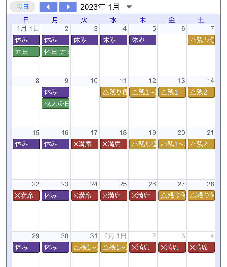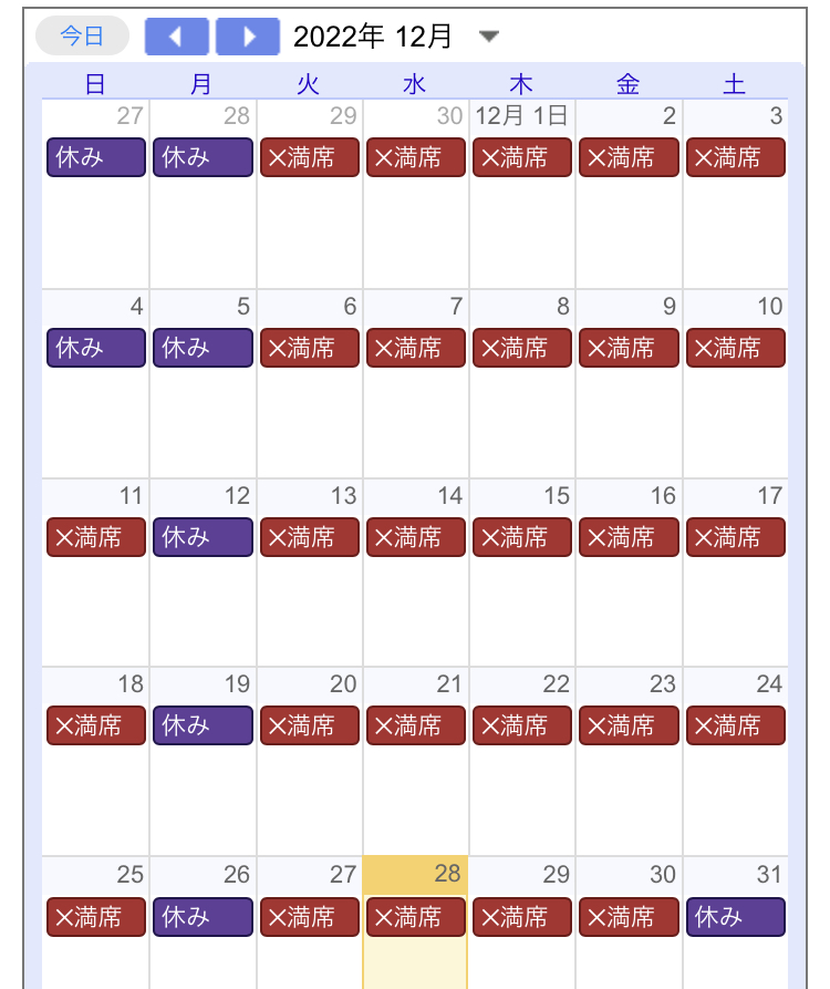 この予約状況は今現在(2022年12月28日)の状況ですので