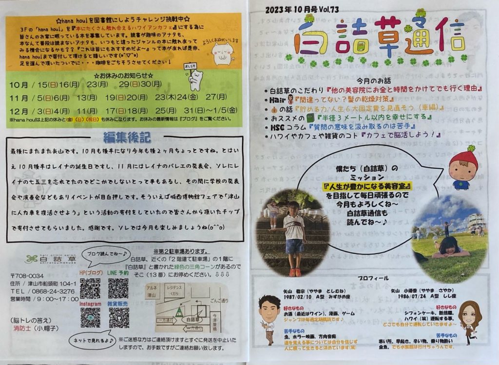 岡山県津山市の美容室『白詰草』のオーナースタイリストの