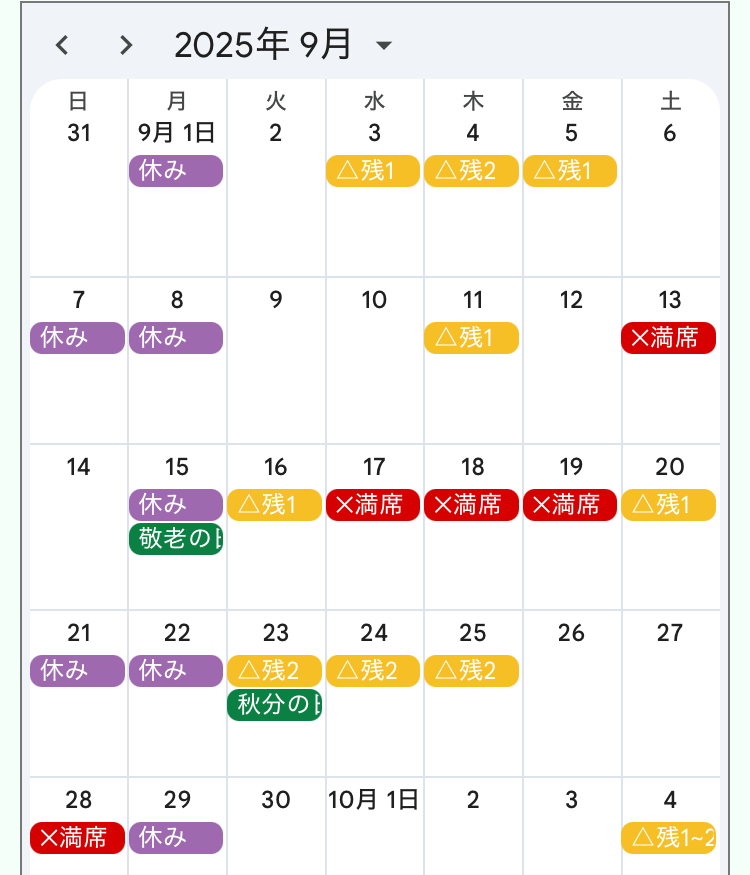 そして9月の予約状況がこちら