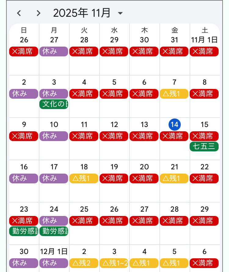 11月の予約状況はコチラです