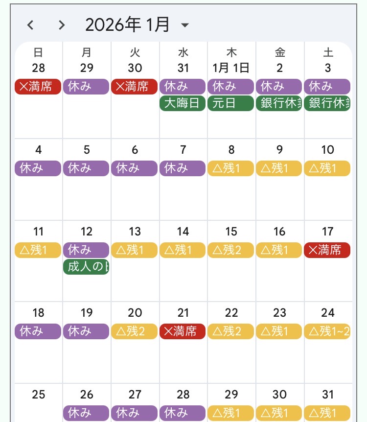 そして1月の予約状況がこちら