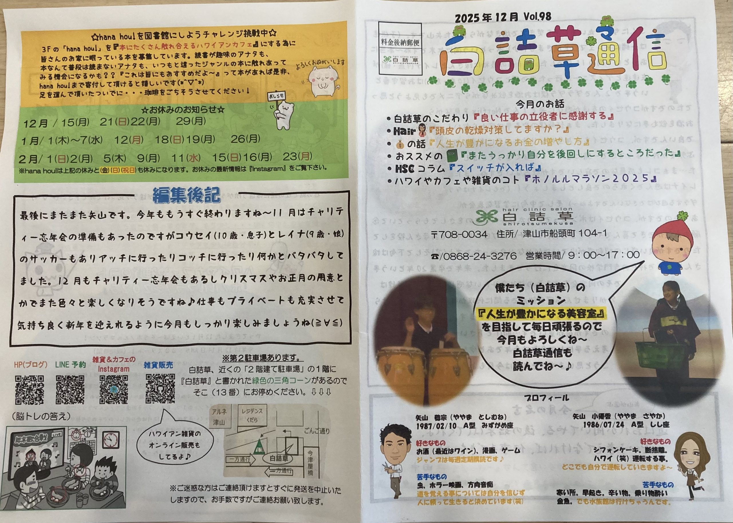 白詰草通信2025年 12月号 Vol.98 ~1P(表紙)&8P(最後のページ)~