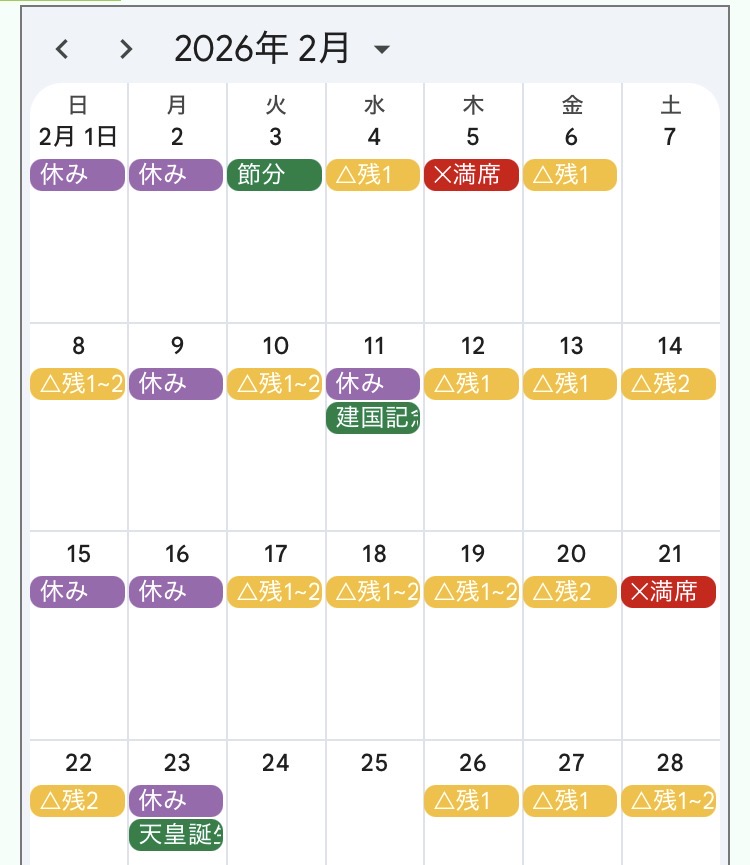 2月はまだ余裕がありますが早目のご予約にご協力いただけると助かります