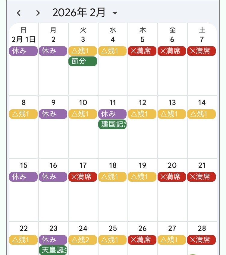 2月の予約状況はコチラです