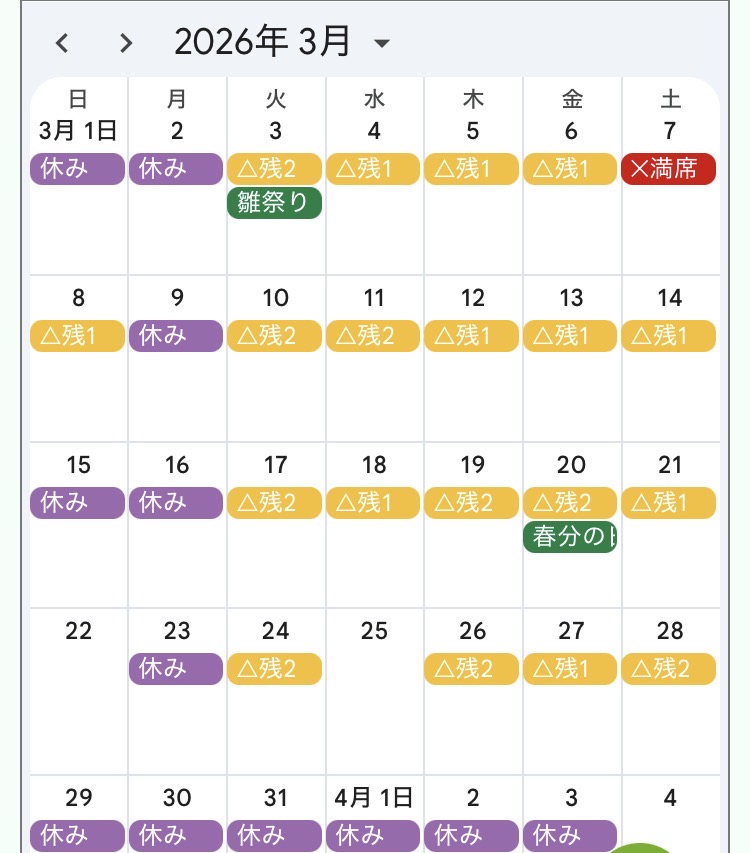 そして3月の予約状況がこちら