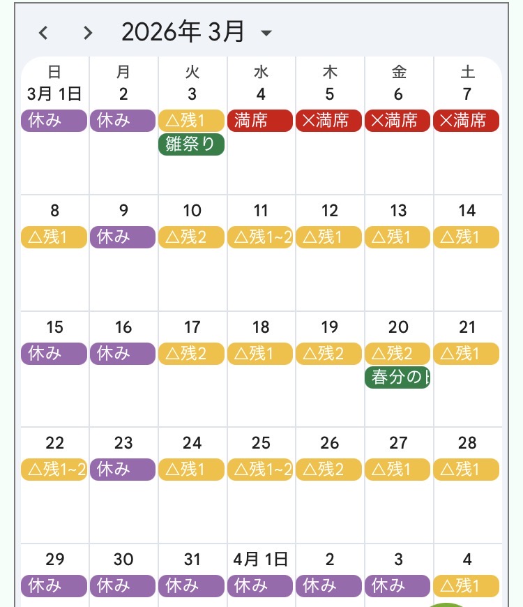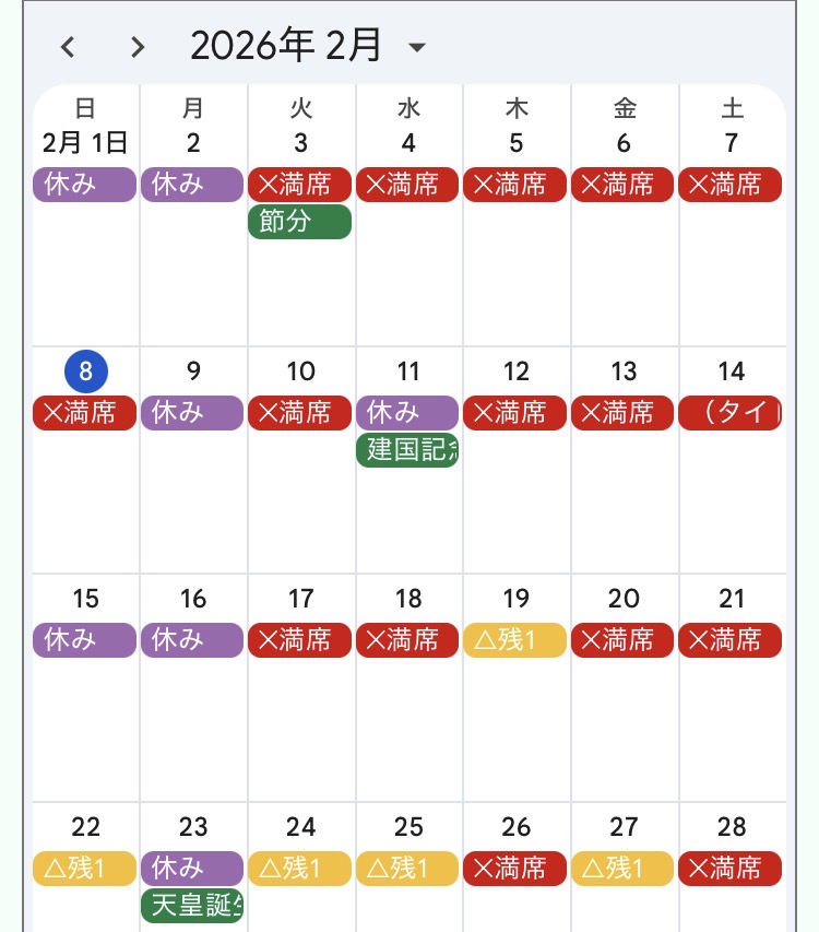 3月はまだ余裕がありますが早目のご予約にご協力いただけると助かります