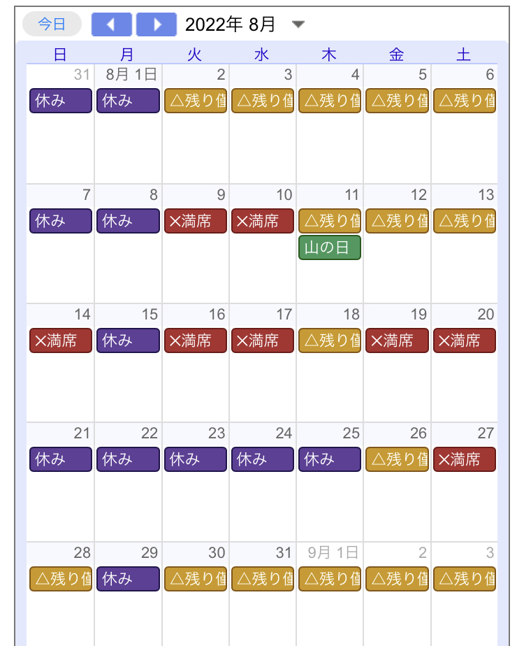 8月はまだ比較的に空きがありますが21日~25日にお休みを頂くので